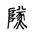 附注段玉裁改為「篆文𨽵省」,並注:「此為小篆,則知上為籀文矣。」又「注見火部『㷭』下。彼云『㷭,𤎩𠊱表也』,緫釋此二篆。此云『塞上亭守㷭火者』,謂邊塞之上守望㷭火之亭,故其字从𨺅,在阸隘之閒也。」